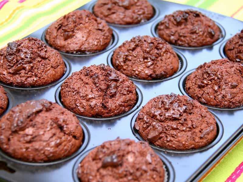 Los muffins son básicamente quequitos individuales, por lo que cualquiera que sepa hacer un queque normal, puede ingeniárselas para hacer muffins. Sin embargo, la forma particular de sus moldes, hacen que -al hornearlos- tengamos un quequito con forma de árbol, con una irresistible copa crujiente. ¡Mmmmmmm! Y para hacerlo mejor aún, les dejo una exquisita receta de muffins de chocolate. Porciones: 12 Ingredientes: