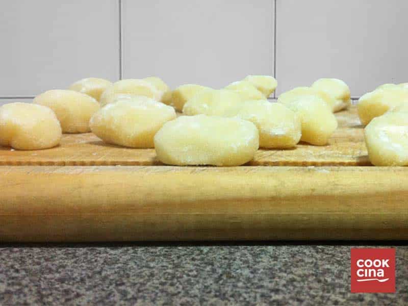 • Corta los ñoquis, en forma transversal, de 1 cm. de ancho. Si deseas puedes darle forma presionando el cubo contra un tenedor. Así conseguirás la tradicional forma de los ñoquis.