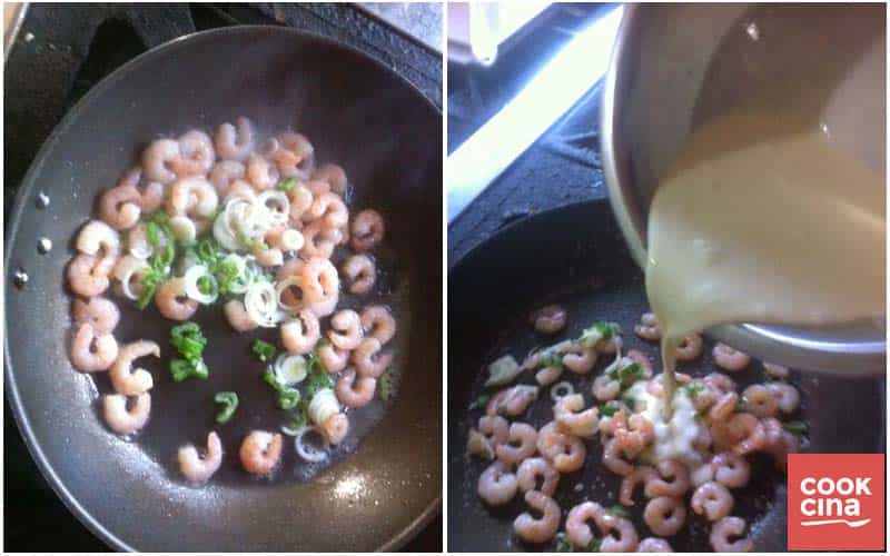 • Saltear los camarones en una sartén caliente, con un poco de aceite.