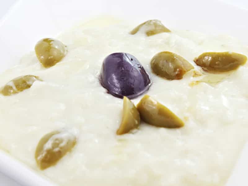 Puré al Oliva Ingredientes (5 porciones): 1 kg de papas 1 taza de aceitunas sin carozo 3 Cdas. De aceite de oliva 1 Cda. De Mostaza 1 diente de Ajo Preparación: - Pelar las papas y poner a cocer en abundante agua fría con sal. - Moler y hacer puré incorporando la leche - Cortar las aceitunas y cubitos ( brunoise) - Picar el ajo bien finito y llevarlo a sofreír en el aceite de oliva a fuego BIEN BAJO, cuidando siempre que no se queme el ajo. - Agregar el aceite junto con el ajo al pure de papas e incorporar la mostaza, las aceitunas sal y pimienta. Servir caliente.