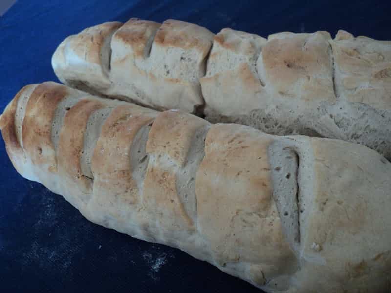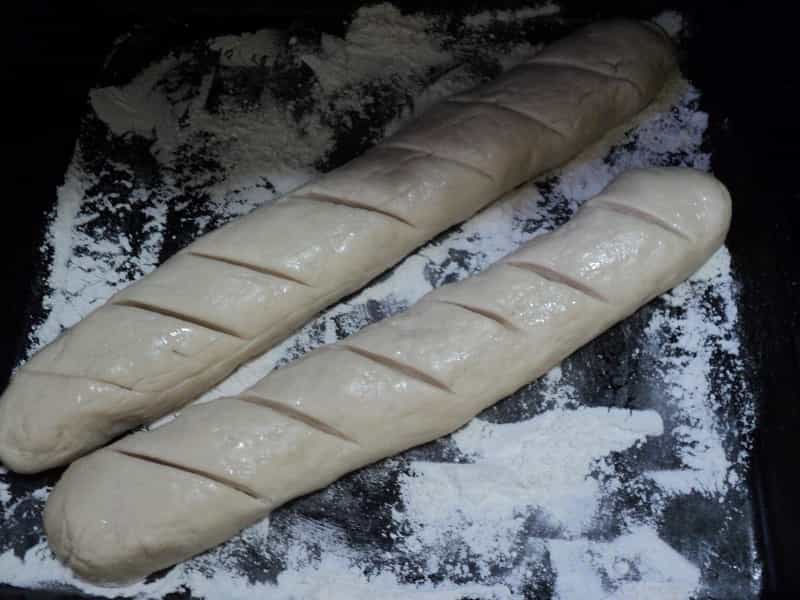 Para terminar, pincela con una clara de huevo ligeramente batida y realízale unos cortes de forma diagonal que le darán el aspecto de baguette. Finalmente, con el horno previamente calentado, hornéalos durante 40 minutos. Podrás disfrutar de un pan delicioso y muy crujiente.