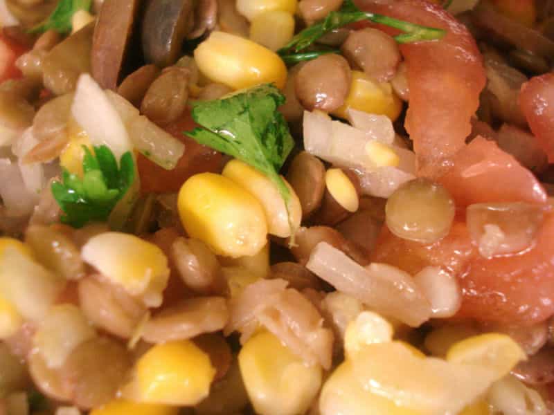Por lo general, asociamos a las legumbres con platos pesados y comidas que preparan las abuelitas. Sin embargo, las alternativas para prepararlas son innumerables. En esta oportunidad te presentamos una complete ensalada de lentejas, especial para la fresca primavera. Ingredientes 2 tazas de lentejas cocidas 2 tomates 1 taza de choclo Media cebolla Aceitunas Perejil Sal y aceite de oliva Preparación Lo primero es echar a cocer las lentejas con un poco de sal y dejar que se enfríen. Reservar.