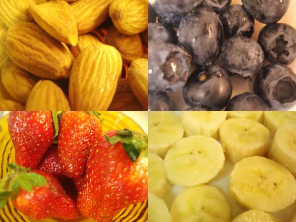 A continuación se le agrega los arándanos, además de las frutillas y plátanos picados. Mezclar todo y servir inmediatamente. Para lograr que el plátano dure un rato más sin que se ponga oscuro, se puede añadir un poco de jugo de naranja.