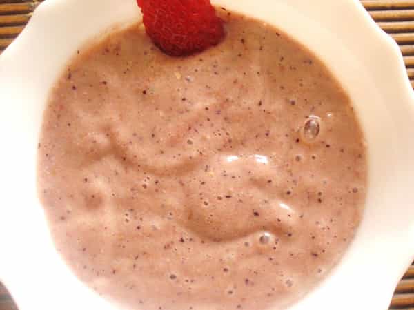 No se trata estrictamente de un yogurt, pero tiene similar consistencia, y su sabor no tiene nada que envidiarle al que se hace a partir de la leche. Ideal para niños que no quieren comer frutas, este postre incluye tres y ni siquiera es necesario agregarle azúcar. A continuación una receta vegana de yogurt de frutos rojos, simple y saludable: Ingredientes 7 frutillas 2 cucharadas de almendras 2 cucharadas de arándanos 2 plátanos Azúcar (opcional)