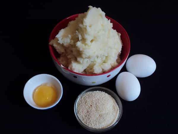 Preparación Para comenzar debes hacer un puré de papas. No hay problema si es uno instantáneo, y recuerda agregarle sal a gusto. Una vez que el puré esté preparado le debes agregar una yema de huevo, pimienta, para luego revolver. A continuación, debes hacer unas bolitas del porte de una nuez. Las bolitas las debes pasar por pan rallado, y a continuación por los dos huevos ya batidos. Luego, nuevamente debes pasar las bolitas de puré por el pan rallado.