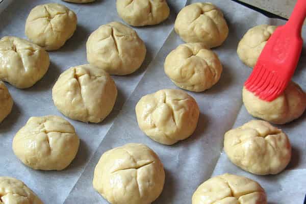 Este es un clásico de los paseos a la playa de la infancia. ¿Quién no se comió un delicioso pan de huevo sentado en la arena, mientras se secaba el agua del chapuzón en el mar? Además, son un rico acompañamiento para tomar once cuando tenemos ganas de comer algo dulce y fácil de preparar. Como sabemos, todas las recetas tiene muchas versiones y ésta es una de ellas. Pero acá les dejo mi versión favorita. La más sencilla y rústica. Ojalá que les guste. Ingredientes (para 12 panes pequeños, 8 medianos) 2 tazas de harina sin polvos de hornear 1 1/2 cucharada de polvos de hornear 1/2 taza de azúcar flor 2 huevos 1 cucharadita de vainilla 1 cucharada de mantequilla derretida 1-2 cucharaditas de agua de ser necesario Preparación Lo primero es enmantequillar la bandeja del horno mientras este se calienta. Por otra parte, en un  bol grande mezcla el azúcar, la harina y los polvos de hornear. En otro bol, bate los huevos, con la mantequilla derretida y la vainilla y revuelve bien. Cuando este todo bien mezclado, vierte esto sobre los ingredientes secos y revuelve bien. Al principio con una cuchara y luego con la mano para empezar a armar tu masa. Amasa sobre una superficie limpia con las manos, enérgicamente, hasta que quede todo bien unido en una masa suave y firme. (Si ves que es necesario agrega 1 ó 2 cucharaditas de agua). Forma bolitas con las manos y aplástalas para darle la forma a los pancitos y anda dejándolos uno a uno en la bandeja del horno y hazles una cruz encima con un cuchillo y píntalos con un huevo batido o leche.