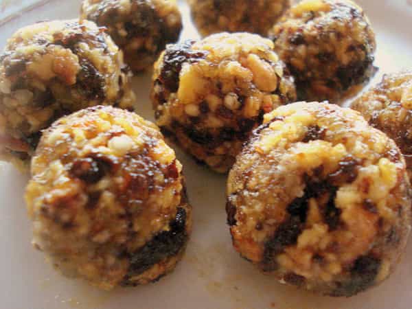 Preparación Deja remojando la quínoa durante unas dos horas, luego lávala bien. A continuación cocínala en dos tazas de agua junto al azúcar y la canela, a fuego medio durante 10 minutos. Por mientras tritura los frutos secos y las frutas deshidratadas que hayas elegido. Agrégale la miel de papaya y revuelve. Cuando esté lista la quínoa, deja escurrir el agua en un colador fino. Ahora es el momento de armar las bolitas. Con la pasta de frutos secos, frutas deshidratadas y miel, forma pequeñas esferas, del porte de una cocada. Luego pásalas por la quínoa e intenta que queden completamente cubiertas por ésta. Llévalas al refrigerador durante una hora antes de servir. Si te fijas, aunque sean pequeñas y con ingredientes naturales, son bastante contundentes. Si quieres una versión menos calórica, basta con no añadirle azúcar, porque con la miel y el dulzor de las frutas puede resultar suficiente. Estas bolitas son ideales como snack a media mañana o como una colación para los niños, aportándoles todos los beneficios de la quínoa y de los frutos que le desees añadir.