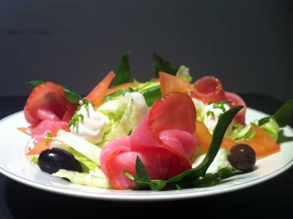 Para ser honesto, la verdad es que yo nunca he sido muy bueno para las ensaladas. De hecho, si me cuesta verlas como un acompañamiento a los platos de fondo, imagínense lo que fue pensar en almorzar o cenar solo una ensalada, puro pasto como diría mi papá. Sin embargo, desde un tiempo a esta parte, la ensalada se ha convertido en mi plato ideal cuando quiero almorzar liviano y no tener el bajón de sueño que da después de comerse un lomo con acompañamiento. Pues bien, entonces ya que estamos en esa, me esforcé en encontrar una ensalada que reuniera distintos sabores, texturas, y que no deje de lado la proteína. Por este motivo, la ensalada ibérica es la que mejore reúne estas características, receta que les comparto a continuación. Ingredientes Lechuga escarolea Lechuga española Espinaca o rúcula Tomate (cortado en gajos) Jamón Serrano Queso philadelphia Aceituna Ciboulette Sal Pimienta Jugo de limón Preparación - Coloca las lechugas y las espinacas o rúcula en una fuente. - Corta el tomate en gajos y añádelos a la fuente. - Añade el queso philadelphia cortado en pequeños cubos. Agrega el jamón Serrano en rollitos. - Corta el ciboullete y agrega junto a las aceitunas para decorar. - Prepara el adereso con abundante zumo de limón, pimiento y sal. ¡Y a disfrutar de tu rica y nutritiva ensalada!
