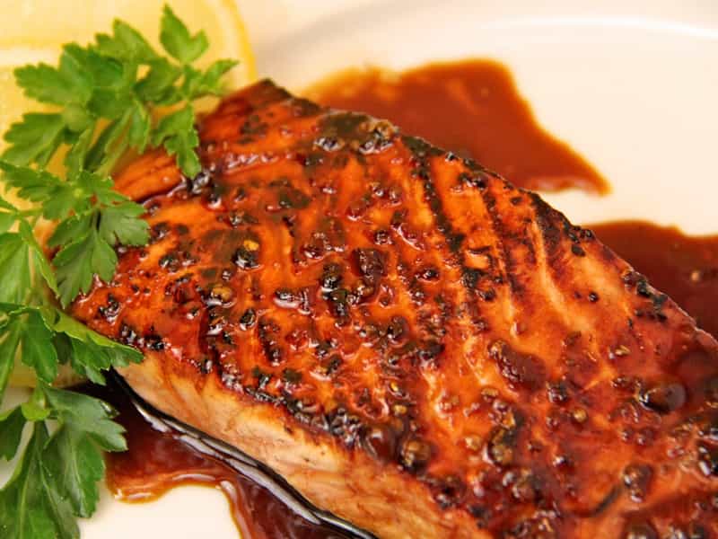 El salmón es uno de mis pescados favoritos y también es la especialidad de una prima que cada vez que tiene invitados a comer se luce con una receta súper sencilla, pero que nunca falla. Así fue como la empecé a hacer. No sé de dónde la habrá sacado ella, pero me encanta, porque es infalible y todos quedan felices. A los mañosos les digo que no se desanimen porque la receta lleve miel. Yo no soy nada de fan de las comidas agridulces, a tal punto que ni si quiera me gusta el pan con mermelada. Así que confíen en mi cuando les digo que el sabor de la miel se confunde entre todos los ingredientes y solo le da un toque especial. ¡Acá les cuento cómo se hace! Ingredientes Filetes de salmón (la cantidad depende de ti) 1/3 de taza de salsa de soya 2 cucharadas de miel 2 cucharadas de jugo de naranja natural 1 cucharada de jengibre rallado Preparación Lo primero, pone tus filetes de salmón en una bolsa sellada tipo Ziploc. Por otra parte, en una fuente pequeña mezcla la soya, la miel y el jugo de naranja y sobre eso rallar el jengibre. Mezcla todo eso muy bien. Antes de usarla, reserva unas 3 cucharadas de la mezcla para después. Lo restante viértelo sobre el salmón (dentro de la bolsa), trata de quitarle todo el aire posible y ciérrala. Refrigéralo durante unos 15 minutos para que el salmón se marine y procura darlo vuelta en la mitad del tiempo para que se impregne de la soya la naranja, la miel y el jengibre por ambos lados. Mientras tanto forra una lata del horno con papel aluminio y, cuando el salmón esté listo, disponlo sobre la lata y desecha la salsa. Ásalo por unos 5 minutos, hasta que el salmón este dorado por encima. Luego esparce las cucharadas de la salsa que antes reservaste encima y vuelve a hornear por uno o 2 minutos más. La idea es que la parte de arriba del pescado se haya ennegrecido, pero no quemado. Es ideal una comida liviana, acompañado de ensaladas o papas en cualquiera de sus deliciosas formas. Ojo que el tiempo de cocción depende mucho de cómo te gusta el pescado. Este tiempo es para que quede término medio. ¡Qué lo disfruten! Foto vía thecafesucrefarine