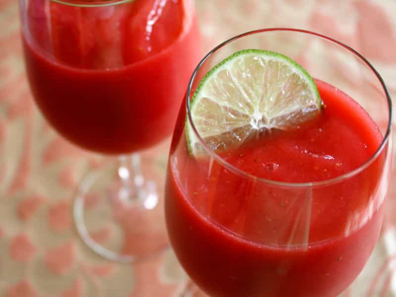 El daiquiri es mi trago del verano por excelencia (junto con el Mojito). Porque es refrescante, frutal y dulcecito, todo lo que necesito de un trago cuando hace mucho, mucho calor. Lo mejor es que el Daiquiri se puede hacer en un millón de versiones, ya que hay tantos tipos como frutas existen. Aunque mis sabores favoritos siempre serán frambuesa, limón y mango. Esta vez haremos uno bien rojo, porque solo su color ya me parece irresistible. Además, la frambuesa tiene la gracia de contrarrestar dulzor, por lo tanto es perfecta para este traguito. Aquí vamos. Ingredientes (para 4 copas) 2 tazas de frambuesas frescas o congeladas 1 1/2 taza de ron blanco 4 a 6 cucharaditas de azúcar flor Limón Mucho hielo Rodajas de limón o menta fresca para decorar Preparación Poner en la juguera las frambuesas, el ron, el azúcar, unas gotitas de jugo de limón y mucho hielo. Moler, moler y moler todo muy bien. Lo más fácil para que el hielo se parta es ir a media velocidad y con golpes cortos. Así de simple. Vas probando y agregando ingredientes si necesitas que quede más fuerte o más dulce. Tú decides, de acuerdo a la consistencia que quieras. A mi me gusta más bien espeso. Para servir, lo mejor es una copa larga y decorar con hojitas de menta o una torrejita de limón ¡Qué sed! Foto vía acraftylass