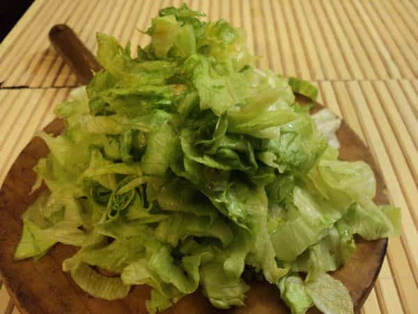 Preparación Pica la lechuga igual como si la fueras a comer como ensalada. Lo ideal es que sea escarola u otra lechuga que no tenga la hoja tiesa. Puede ser hidropónica, pero además de ser más cara, rinde mucho menos que la escarola. En un recipiente bate los huevos con un tenedor hasta que estén en punto nieve. Comienza a agregar la harina de a poco para que no se formen grumos. Sigue batiendo hasta que acabar la harina. Una vez lista esta mezcla, vierte los cortes de lechuga y mezcla todo muy bien hasta que se vea homogénea. Agrega sal y pimienta a gusto y todos los demás ingredientes que te gusten.