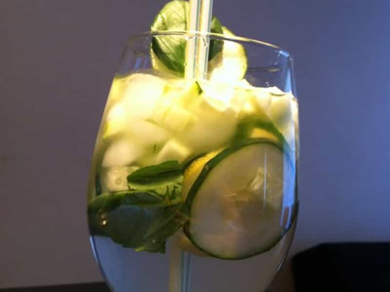 Ya es temporada de bebidas y refrescos. Los jugos naturales de frutas y de verduras, sobre todo el último tiempo, han llamado mi atención. Sobre todo aquellos jugos de palta, pepino, betarraga, zanahoria, entre otros. De pronto pensé qué pasaría se mezclamos esta nueva tendencia pero con alcohol y ofrecer un refrescante cóctel a los amigos cuando pasen por la casa. Entonces nació la idea de experimentar el mojito pepino. Quizás a los más puristas y defensores del mojito cubano les puede molestar esta receta (ojo que ya hemos realizado variaciones de Mojito antes). Sin embargo, yo los invito a innovar y les prometo que se sorprenderán de los resultados. Y claro, querrán tomarse otro y otro, pero cuidado con los excesos. Ingredientes ½ pepino pelado y cortado en cubitos 40 cc de zumo de limón fresco 2 cucharadas de azúcar flor 4 hojitas de albahaca 80 cc de ron blanco 4 rebanadas de pepino Soda