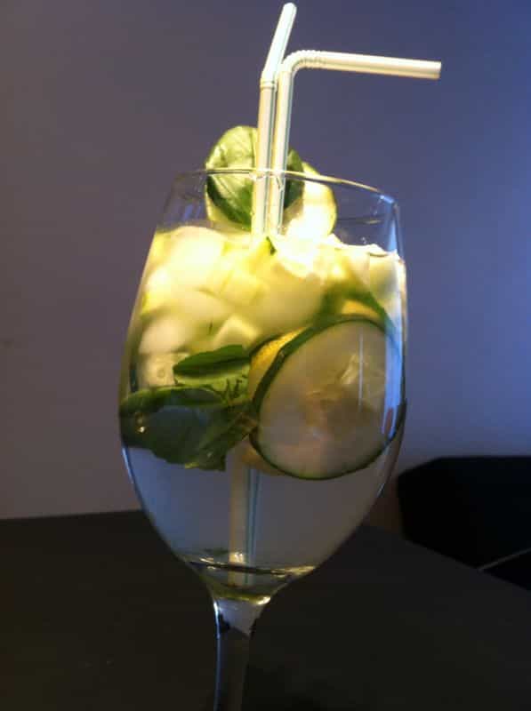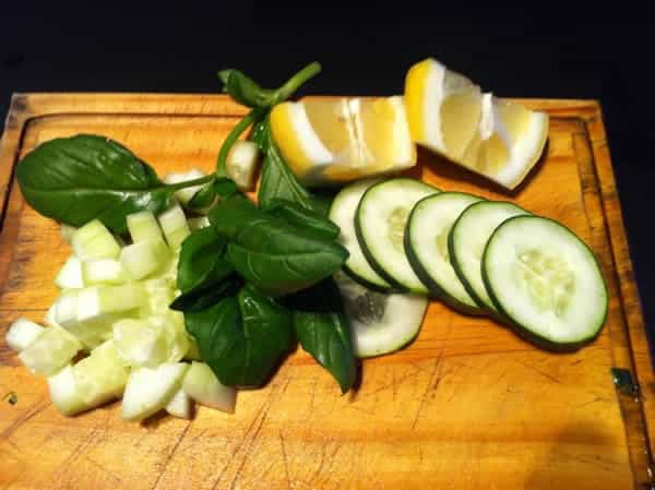 Preparación Macera el jugo de limón, el azúcar flor y la albahaca. Agrega los cubitos de pepinos y llena hasta el tope de la copa con hielo frappe y agrega el ron. Finalmente incorpora la soda. Luego, decorar con pepino y albahaca para que tenga una presentación entretenida.