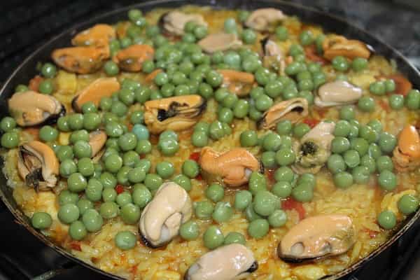 Para terminar, incorporaremos las arvejitas y los choritos y dejaremos cocinar por unos cinco minutos a fuego lento.