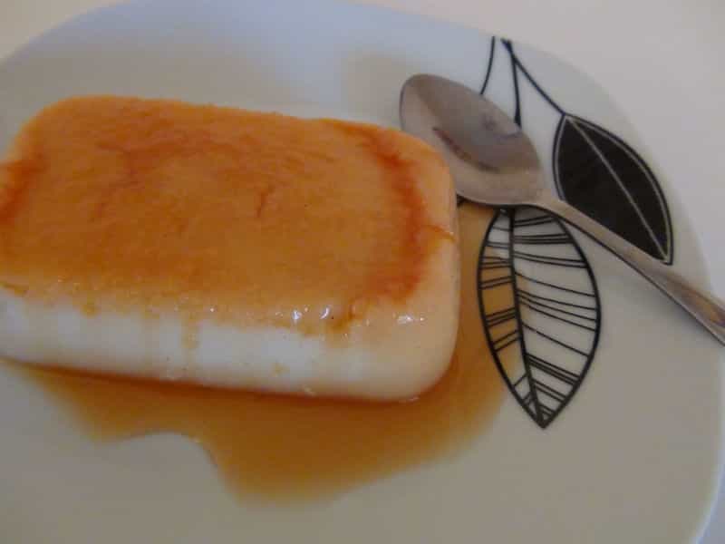 Comenzamos realizando el caramelo. Ponemos el azúcar en una sartén a fuego bajo junto con el agua. Se debe tener cuidado ya que el azúcar se quema con facilidad. En este paso es importante no revolver el azúcar mientras se disuelve, ya que podría cristalizarse y quedaría con una textura grumosa. Cuando tome un color dorado retiramos del fuego y colocamos la mezcla en el fondo de nuestros moldes.