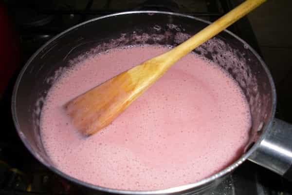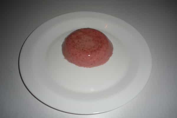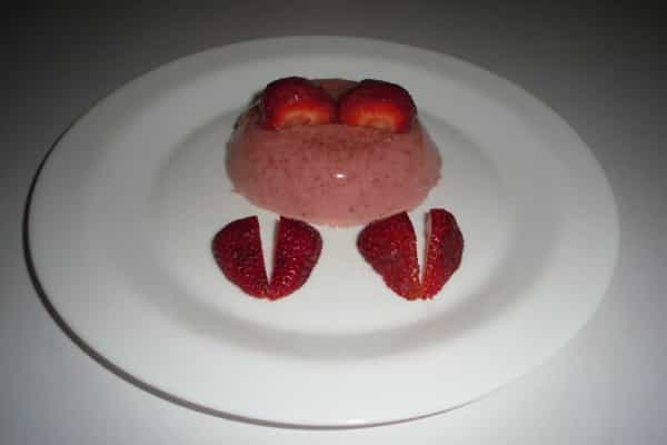 Antes que comience a hervir retíralo del fuego y vacíalo en recipientes. Espera que se enfríe y mételos al refrigerador y cuando esté completamente rígido, está listo para servir; puedes utilizar algunas frutillas para decorar.