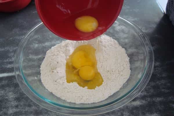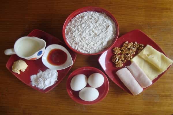 Masa - 5 huevos - 500 grs. de harina - Aceite de oliva, cantidad necesaria - Sal a gusto Relleno - 200 grs. de jamón - 300 grs. de queso - 100 grs de nueces - Optativo: crema Salsa - 50 grs. de mantequilla - 1 litro de leche - 6 cucharadas de maicena - 1 tomate mediano picado finamente - 200 grs. de salsa de tomates - Sal y pimienta a gusto Preparación Masa: Unir la harina, los huevos y el aceite de oliva, hasta formar una masas suave y homogénea. Estirar la masa con uslero o máquina, dejarla lo más delgada posible. Dejar reposar por unos 10 minutos. Reservar.