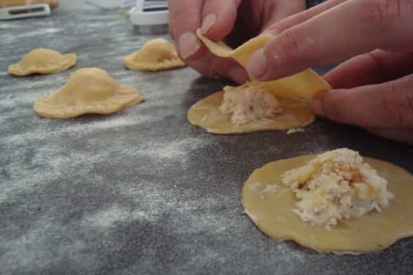 En esta ocasión, la bella Italia se nos presenta en una de sus más deliciosas formas: sorrentinos, pasta que conserva en su origen la auténtica receta del país europeo. El relleno es a gusto del consumidor, y mientras piensas en el ingrediente maestro, te invitamos a probar estos sorrentinos rellenos de queso, jamón y nueces. Como para gritar ¡mamma mia! Ingredientes (para 5 personas)