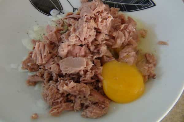 Preparación: Antes de comenzar, debemos poner el atún en un colador y quitar todo el exceso de líquido, para que nuestras croquetas no se desarmen a la hora de cocinarlas. En un bol agregamos la cebolla picada en cubos, sal, pimienta, un huevo batido y el atún, luego mezclamos hasta incorporar todos los ingredientes. Si desean pueden agregar perejil picado para dar mayor sabor a la preparación.