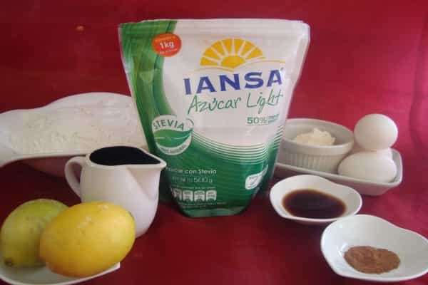 - 1/2 taza de AZÚCAR LIGHT STEVIA, de IANSA - 125 grs. de mantequilla - Ralladura de 2 limones - Jugo de 1/2 limón - 3 huevos - 1 cucharada de esencia de vainilla - 1/2 cucharadita de canela - 2 taza de harina con polvos de hornear Preparación Calentar el horno a fuego medio La mantequilla debe estar a temperatura ambiente para poder trabajarla mejor. Batir la mantequilla junto con la canela y el AZÚCAR LIGHT STEVIA de IANSA, hasta que los ingredientes se integren completamente. Agregar la ralladura de limón y luego los huevos, uno a uno. Unir todos los ingredientes hasta que la mezcla tome consistencia homogénea y más bien líquida. Agregar el jugo de limón, revolver e ir integrando la esencia de vainilla. Añadir la harina cernida y mezclar suavemente. Enmantequilar un molde y verter la mezcla uniformemente.