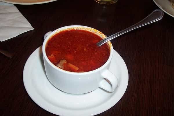 3) Goulash Ingredientes (4 personas): -550 grs. asiento cortado en cubitos. -1 cucharada de aceite. -1 cebolla cortada pluma. -1 diente de ajo machacado. -1 cucharada de paprika. -1 cucharada de comino alemán. -1 lata (500 grs.) de tomate al natural. -1 cucharada de salsa de tomates. -1 cucharada de maicena. -Sal. -Pimienta. -1 taza de crema ácida. Preparación 1.En una fuente de 2 litros mezcla el aceite, cebolla y ajo y cocinar por 5 minutos. 2.Agrega la carne, los tomates picados y su jugo, la paprika, el comino alemán, salsa de tomates, sal y pimienta. Cocina tapada por 15 minutos. 3.Mezcla la maicena con 2 cucharadas de agua y agregar la carne. Cocina por 5 minutos. 4.Sirve en recipientes individuales y cubre con crema ácida.