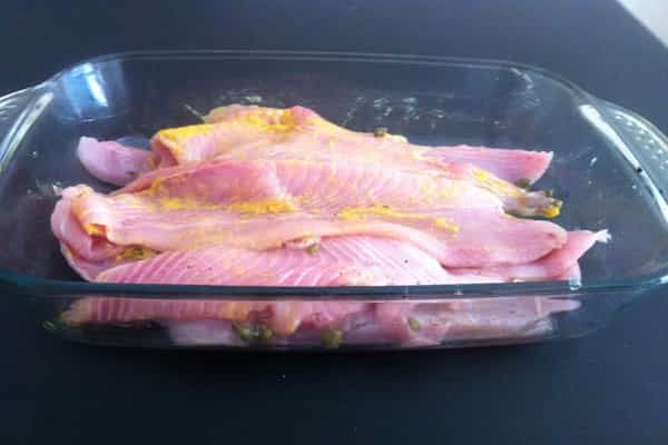 Preparación: Limpia los filetes de pescado, asegurándote de que no queden espinas en su interior. En una fuente deja marinando con ajo, pimienta, sal, aceite de oliva y finas hierbas por al menos dos horas en el refrigerador.