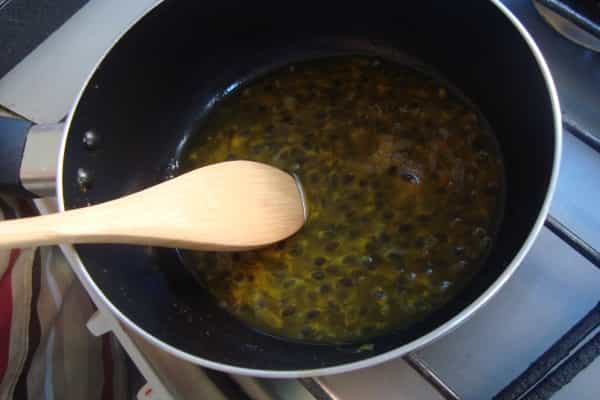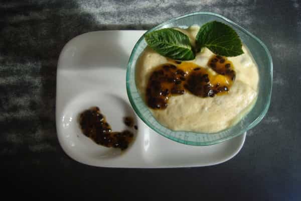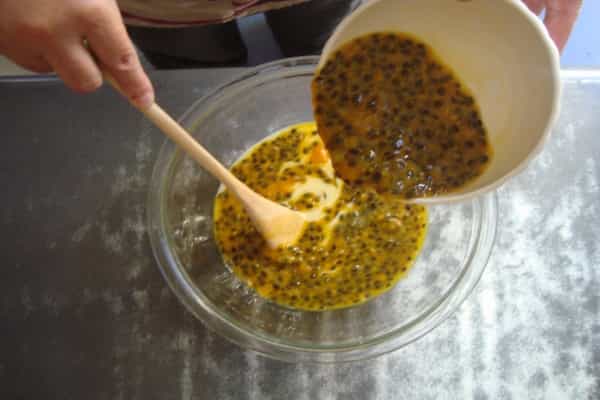 Preparación salsa Mezclar 3 cucharadas de pulpa de maracuyá con 3 cucharadas de azúcar y el agua, dejar hervir por un minuto, hasta que reduzca un poco, luego apagar. Dejar enfriar. Al servir el mousse volcar en la superficie la salsa y ¡listo!, a disfrutar de un exótico y agradable sabor.