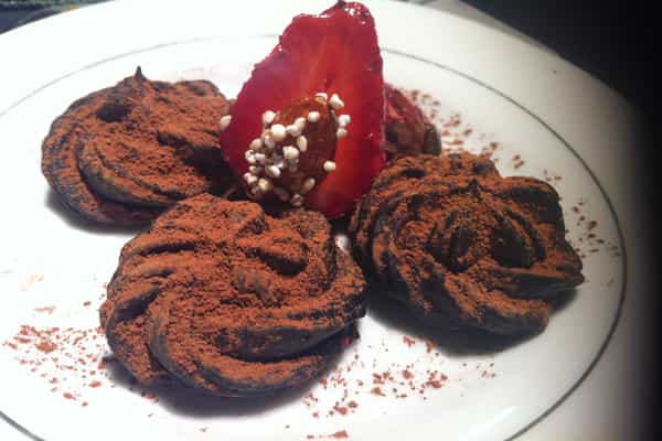 Sirve tus suspiros de chocolate acompañados de lo que quieras, puede ser de una fruta de estación o comer directamente sin cocción y utilizarla para acompañar un bizcocho de vainilla, almendra, naranja o cualquiera se tu preferencia.