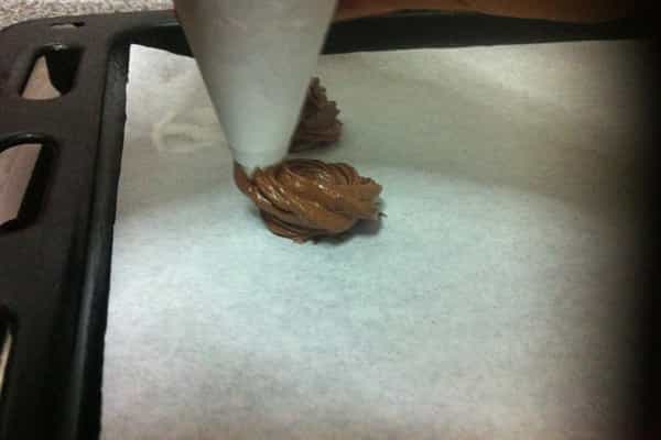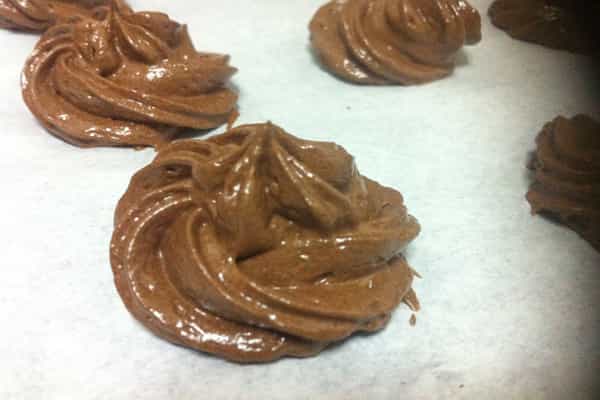 Rellena una manga pastelera con la preparación y haz las formas de tus suspiros. Te sugiero que sea un movimiento circular a muy baja altura.