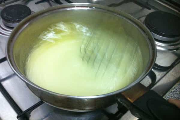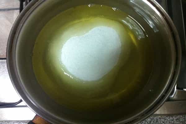 A fuego muy bajo, pone la olla y empieza mezclar sin parar, con movimientos envolventes, por alrededor de 4 minutos. Hasta que se disuelvan todos los granos de azúcar y que no se sientan al tacto.