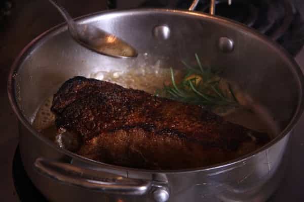 Ingredientes - 1 kilo de abastero - 4 cucharadas de aceite - 1 cebolla mediana picada fina - 1 zanahoria picada en cubos pequeños - ½ taza de vino tinto - 1 tarro de crema (160 centímetros cúbicos (cc)) - 1 bandeja de champiñones (200 gramos) - 1 cucharada de perejil - Sal, pimienta y merquén