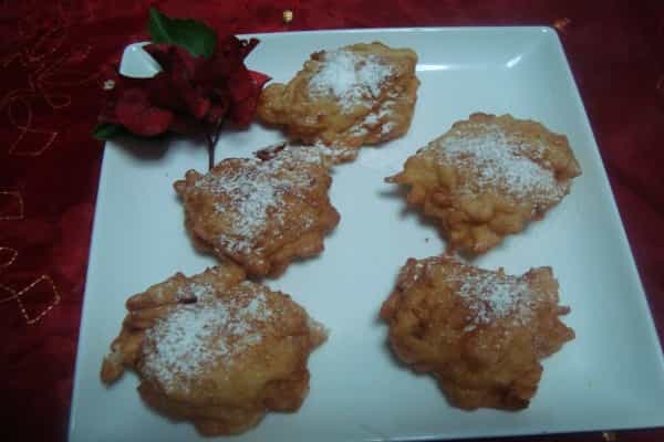 El olor de masitas friéndose me transporta inmediatamente a mi niñez, cuando desde la cocina emanaba el incomparable aroma, que me hacía ir una y otra vez preguntando ¿ya está listo? Y la ansiedad era completamente entendible: fritos de manzanas, delicioso bocadito relleno de manzana rallada, que es el mejor complemento de un té o un fresco jugo de frutas. Además de ser exquisita, esta receta presenta en su máximo esplendor a la manzana, una de las frutas más populares que existen. Y sobre la manzana es mucho lo que se cuenta: desde que una manzana al día evita las visitas al médico, hasta que Eva se la ofreció a Adán, tentándolo al pecado. De esta fruta bien podría hacerse un verso o una prosa, pero para hacerle una oda casera, basta con preparar este delicioso postre de lujo. ¡Manos a la obra! Ingredientes (para 4 personas) -5 cucharadas de harina -100 centímetros cúbicos (cc) de leche -1 huevo -3 manzanas verdes grandes -1 cucharadita de polvos de hornear -2 cucharadas de azúcar flor (opcional) -Azúcar flor para espolvorear -Aceite para freír Preparación En un recipiente mezclar la leche con la harina cernida hasta formar una crema espesa, añadir la yema y los polvos de hornear (en este momento puedes agregar 2 cucharadas de azúcar flor si quieres una preparación más dulce), integrar hasta conseguir una crema homogénea.