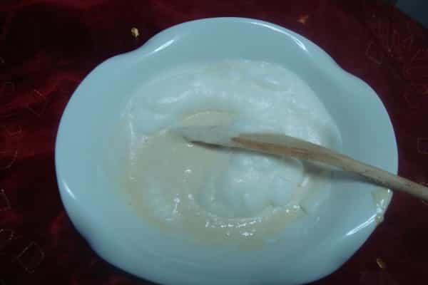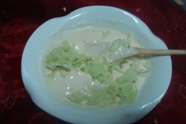 En otro recipiente batir la clara a punto de nieve (debe quedar firme), añadir la clara batida a la preparación anterior con movimientos envolventes. Pelar y rallar las manzanas, añadirlas a la preparación anterior, integrar suavemente.