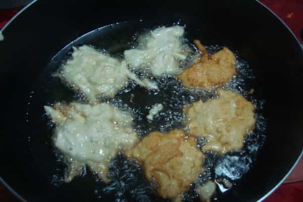 Colocar a fuego medio un sartén hondo con aceite, con ayuda de una cuchara, ir poniendo montoncitos de la pasta y freír a fuego medio. Darles la vuelta y retirar en una fuente con papel absorbente. Puedes servir los fritos de manzana tibios o fríos espolvoreados con azúcar flor.