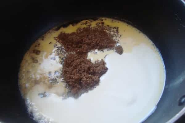 Preparar la salsa de caramelo: colocar una olla pequeña a fuego medio 100 gramos de mantequilla y ½ taza de azúcar morena, mezclar hasta homogenizar, incorporar la crema, dejar hervir revolviendo constantemente, una vez que haya hervido bajar a fuego bajo y cocinar por 5 minutos sin revolver.
