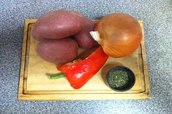 En una olla profunda, agrega un poco de aceite de oliva y saltea el ajo y la cebolla hasta que esta comience a transparentar. Condimenta con paprika, comino, pimienta y sal a gusto. Luego, agrega el pimentón rojo, revuelve y baja la temperatura con un litro de agua fría. Incorpora a la preparación las papas con el pescado. Da cocción por al menos 25 minutos, hasta que las papas estén ya cocidas.