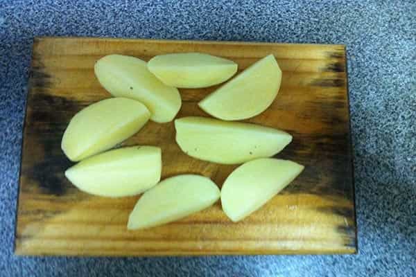 Pela las papas y córtalas en gajos (en 4 cuartos).