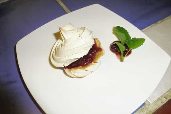 - 4 claras. - 250 grs. de azúcar blanca. - 1 cucharadita de maicena. - 1 pizca de sal. - Puré de lúcuma/mermelada casera. - Mantequilla. Utensilios: - Batidora. - Manga. - Boquilla. - Papel mantequilla. Preparación: