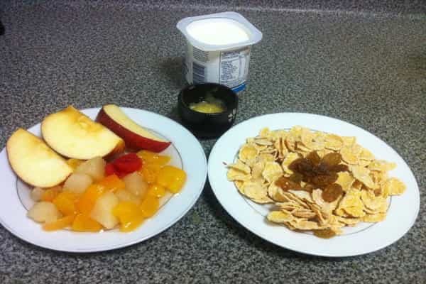 Preparación Corta las frutas en cubos parejos y pequeños. Mezcla el yogurt con la miel. Puedes agregar canela si es de tu gusto.
