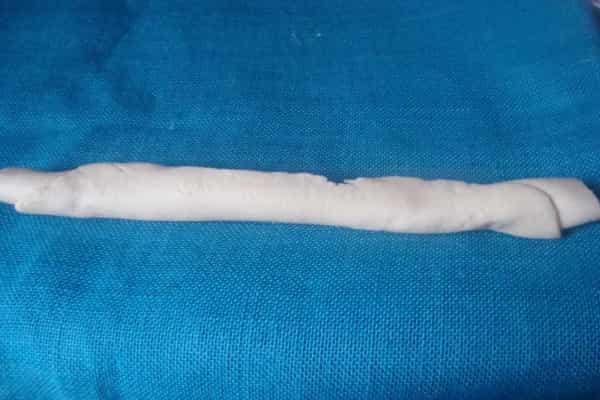 Envolver en papel transparente o en una bolsa plástica y dejar reposar en el refrigerador por 20 minutos.Repetir esta operación cuatro veces, al cabo de las cuales la masa de hoja u hojaldre está lista para ser utilizado. Poner en una olla los 125 mililitros (ml) de agua con 250 gramos de azúcar, hervir por 4 minutos y retirar del fuego. Reservar el almíbar. Disolver 30 gramos de harina en un poco de leche. En una olla colocar la leche restante con la ralladura de limón y la canela a hervir. Cuando comience a hervir, añadir la mezcla de harina y leche y sin dejar de revolver llevar de nuevo al fuego hasta que comience a hervir. Retirar del fuego y añadir en hilo el almíbar, mezclar bien, colarlo y dejar enfriar la crema. Sacar la masa del refrigerador, retirar el plástico y estirarla con el uslero, enrollarla formando un tubo, cortar trozos de 2 a 3 centímetros.