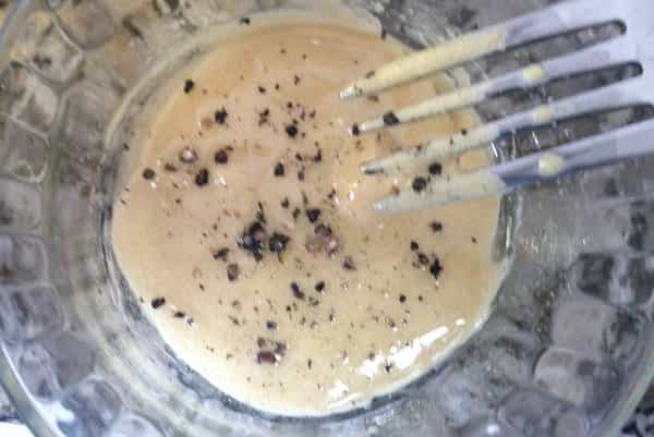 Para la vinagreta, mezclar la mostaza con sal y pimienta agregando vinagre y aceite en pequeñas cantidades para que la mezcla quede unificada. Una vez más existe la opción de servir en cada plato por separado o llevar en un recipiente pequeño a la mesa. Esta es una buena opción especialmente si hay comensales a quienes no les guste la mostaza. Servir a temperatura ambiente.