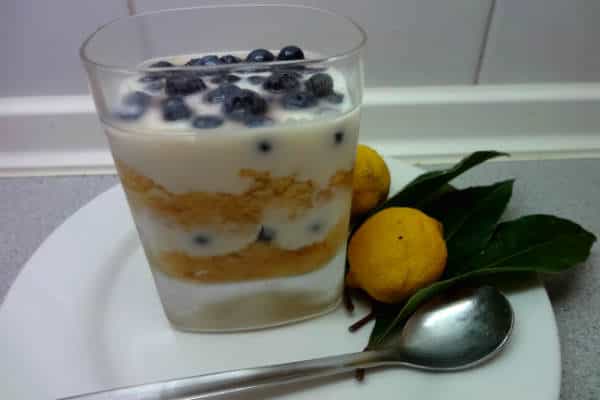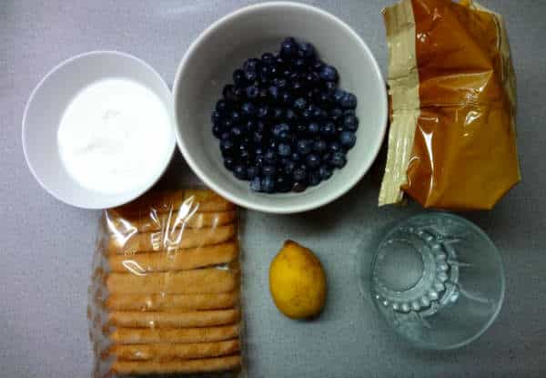 El tiramisú es uno de mis postres favoritos, especialmente si son hechos en casa. Para realizar esta receta no necesitarás demasiados ingredientes, ni de mucho tiempo, por el contrario, en cosa de minutos podrás disfrutar de un sabroso Tiramisú de Arándanos. Ingredientes (3 porciones) -1 paquete de galletas de champaña -1 limón -2 tazas de arándanos -1/4 de taza de azúcar -1 yogurt natural -1 vaso de agua