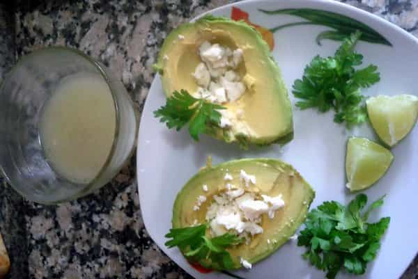 También tienes la opción de servir directamente la palta cortada por la mitad, con trocitos de Roquefort y hojas de perejil.