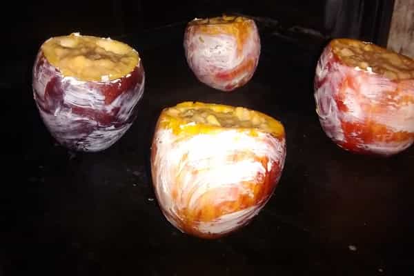 y ya listas, las enmantequillaremos y las llevaremos al horno, unos 20-25 minutos, o hasta que notes que la cáscara de las manzanas se ha arrugado.