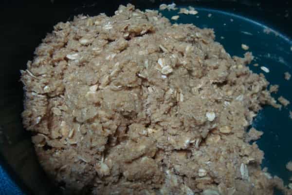 Precalentar el horno. En un recipiente mezclar los huevos con 3 cucharadas de margarina, batir con un tenedor o batidor de globo, incorporar los ingredientes secos (harina, polvos de hornear, avena, azúcar), por ultimo agregar la miel y los arándanos, mezclar, debe quedar una masa seca.