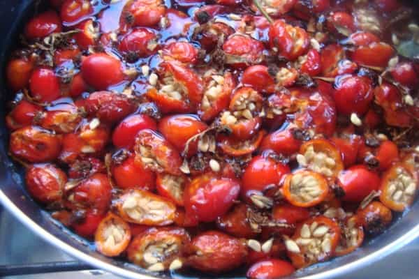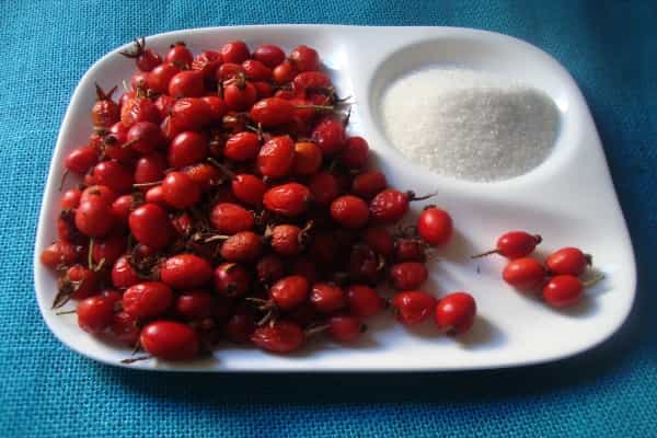 -1 kilo de rosa mosqueta -Azúcar cantidad necesaria -1 cucharadita de jugo de limón (opcional) Preparación Lavar la rosa mosqueta, cortarlas por la mitad, ponerlas en una olla con 1 ½ litro de agua, cocinar por 15 a 20 minutos.