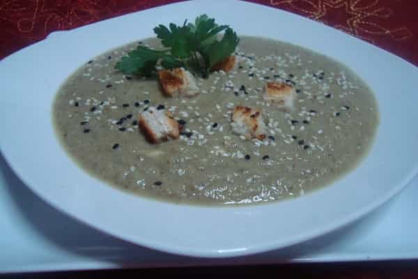Servir la crema de berenjenas caliente. Se puede adornar con pan tostado, semillas de sésamo y perejil picado. Las verduras pueden convertirse en las mejores protagonistas de tus comidas. Atrévete y pon en primera fila a las berenjenas con esta rica Crema de Berenjenas, que con su increíble textura y sabor te harán pedir nuevamente repetición.