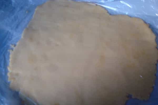Colocar la masa en una mesa entre una bolsa plástica y papel film, con la ayuda de un uslero estirar la masa, retirar el plástico de encima y cortar con ayuda de un cuchillo los triángulos, levantar con cuidado los nachos, colocarlos en una bandeja y llevar al congelador por 1 hora.
