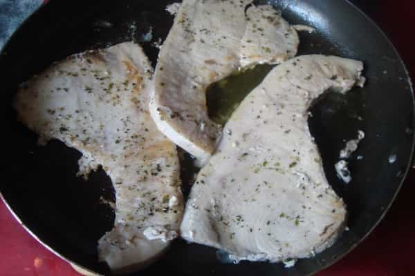 En un sartén con aceite de oliva caliente, cocinar el pescado por 3 minutos, dar vuelta y cocinar a fuego medio por otros 2 minutos, dependiendo del grosor de los filetes de pescado.