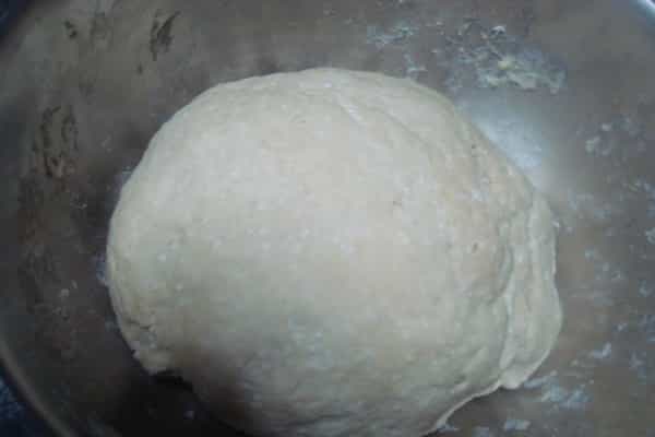 En un recipiente mezclar la harina, levadura, y sal, incorporar agua tibia en pequeñas cantidades hasta formar la masa. Dejar reposar la masa tapada en un lugar tibio por 20 minutos.